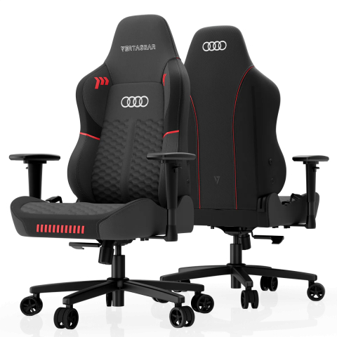 Silla gamer Vertagear SL3800 edición especial Audi Sport, con diseño exclusivo, soporte lumbar ContourMax™ y asiento VertaAir™ para un confort premium.