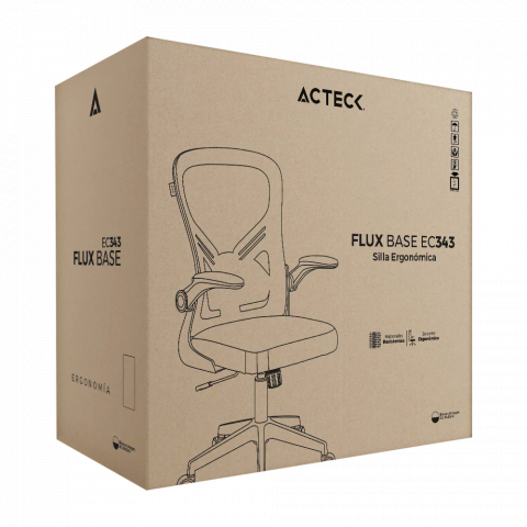 Acteck Flux Base EC343 AC-943352, silla ergonómica de oficina, respaldo de malla, soporte lumbar, reposabrazos abatibles, soporta hasta 100 kg.