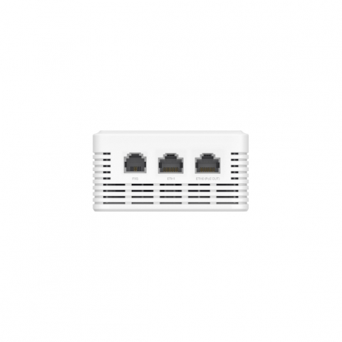| Puertos | 1 × SC/APC GPON uplink, 2 × Gigabit LAN (uno con PoE Out 802.3af), 1 × FXS RJ11 (VoIP) |